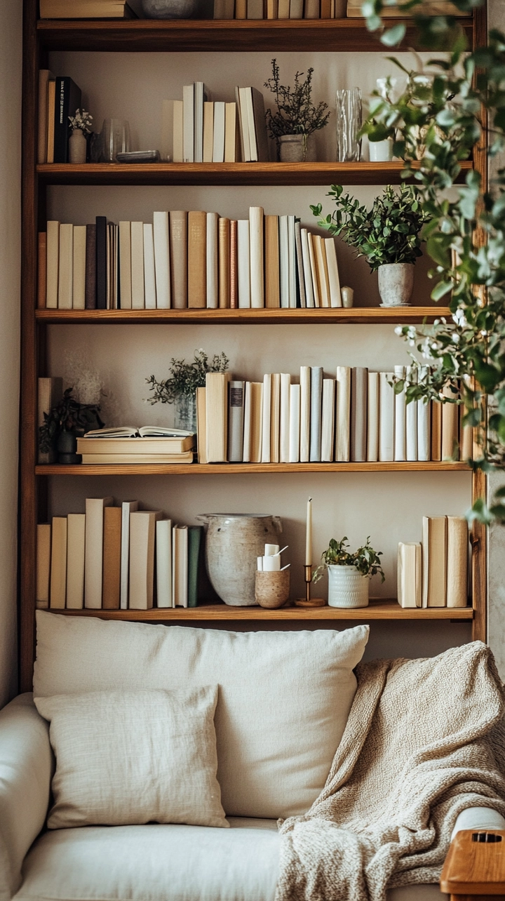 - 1. Cozy, Neutral Bookshelf with Warm Textures