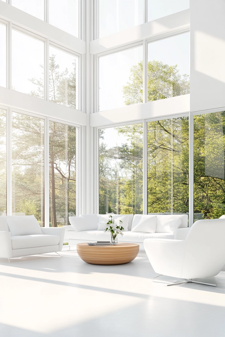 - 20. Bright Elegance: Floor-to-Ceiling Windows in a White Living Room